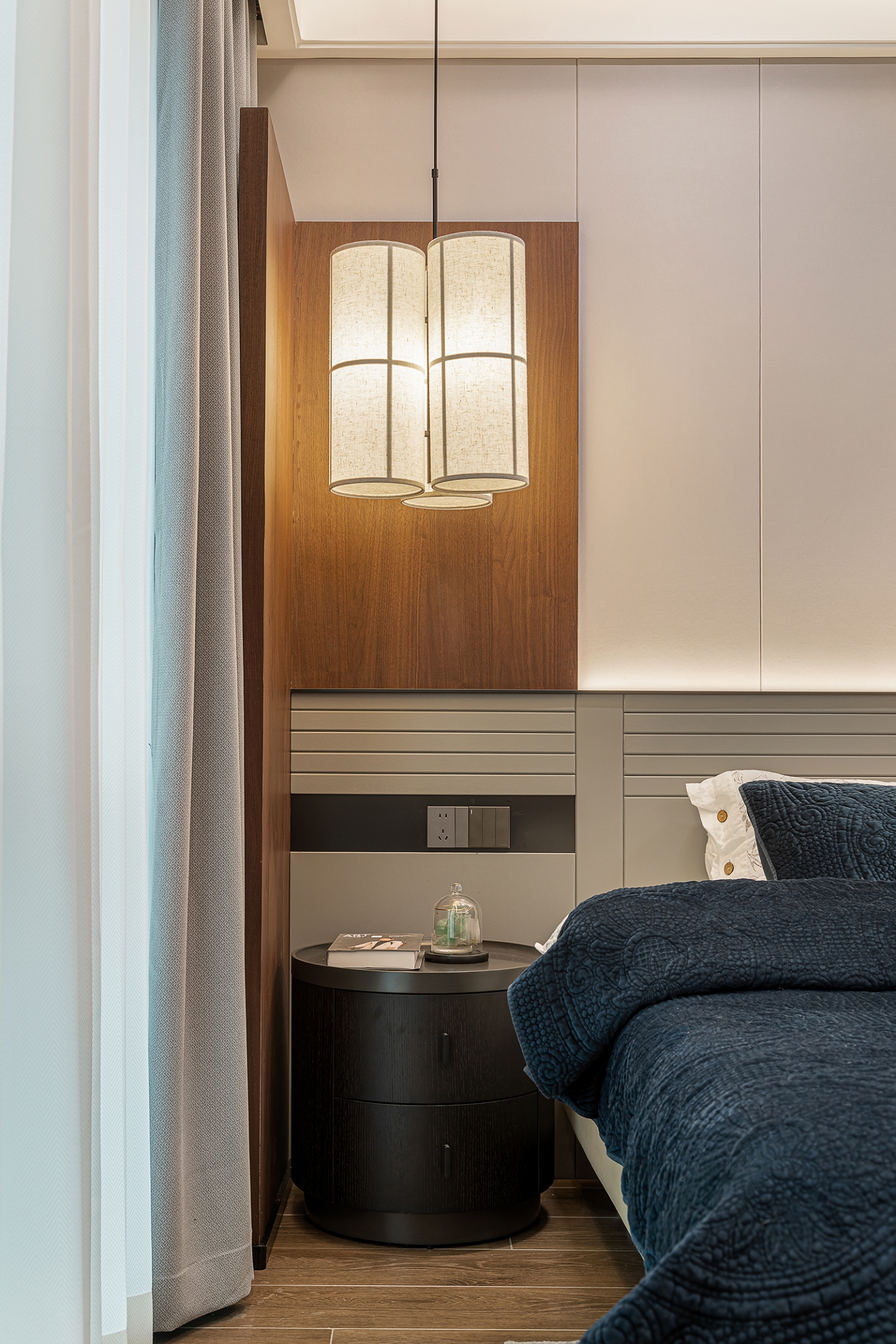 The void design maximizes the introduction of natural light and creates a spacious and bright atmosphere. Paired with simple and neat furniture and artistic decorations, the walls of the public area are made of serrated wooden wall panels. Their unique shape and texture add a natural and rustic atmosphere to the space, while contrasting with the overall simple and modern style, highlighting humanistic feelings.