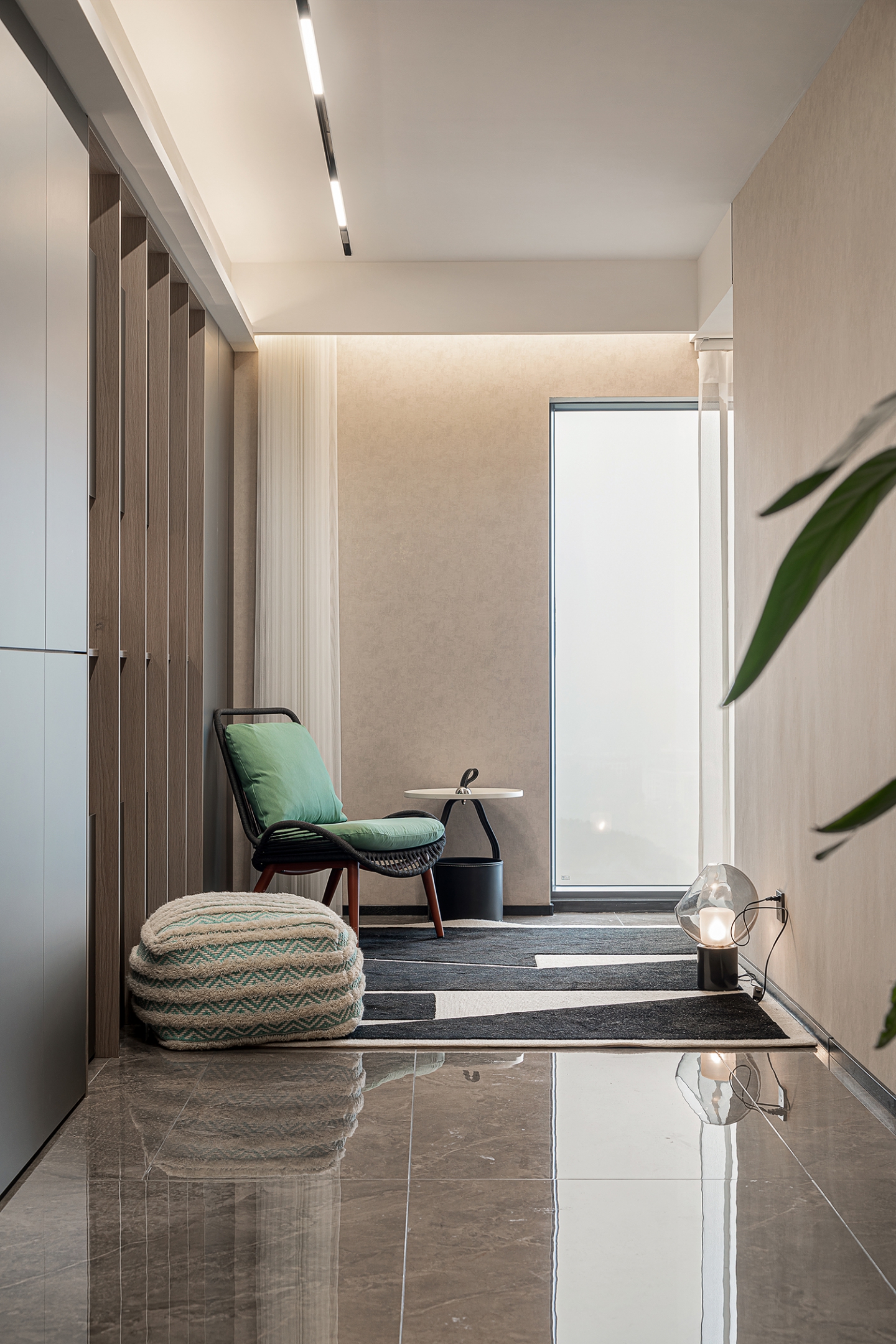 The design of this project is inspired by "structuralism" and constructs a sense of hierarchy and rhythm in the space through elements such as an empty living room and a spiral staircase.
