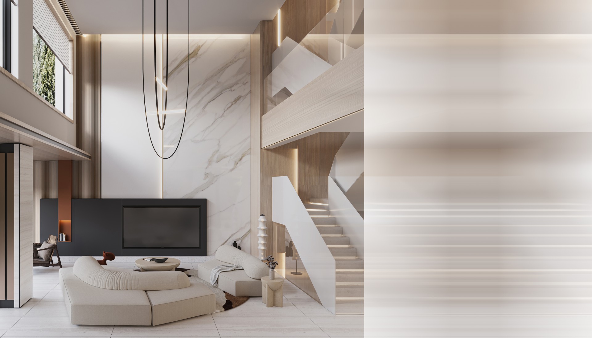 本案是一座浸润着阳光与绿意的现代私宅,温馨而富有诗意,融入第四代住宅理念,将人与自然、生态与空间紧密相连。